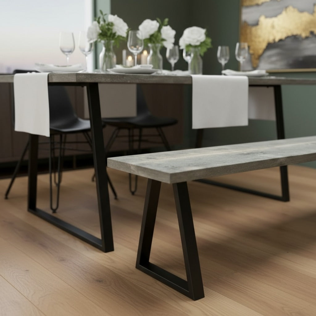 Rustic Scaffold Board Dining Table & Bench Set with Steel Square Legs – Industrial Reclaimed Style