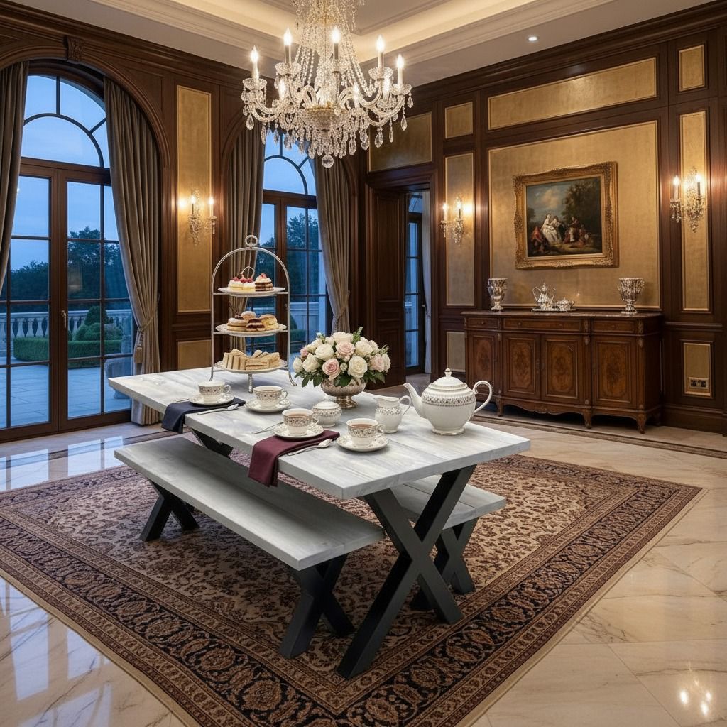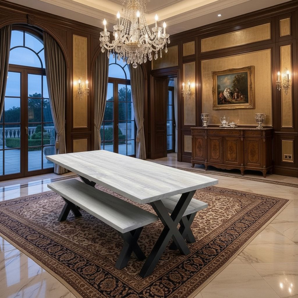 Rustic Scaffold Board Dining Table & Bench Set with Steel Square Legs – Industrial Reclaimed Style